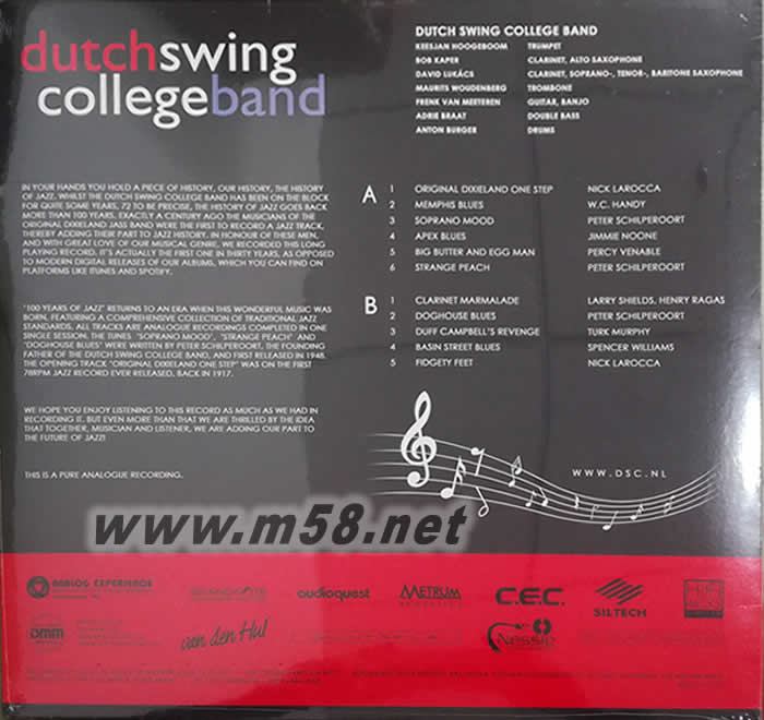 100 Years of Jazz (百年爵士) 180g 33RPM LP黑膠(m58.net) 一個純模擬錄音的時間!正式開始!歐洲享負盛名爵士樂隊,Dutch Swing College Band (荷蘭傳統爵士樂團)自1945年成立及公開表演后,很快被荷蘭及周邊國家音樂愛好者熱捧。其間更成立學院及講課,直到今日仍是獲獎無數,荷蘭傳統爵士樂領域的領軍人物。這“近百年爵士樂隊”回歸到傳統搖擺爵士樂(Swinging Jazz),STS Digital為了帶給聽眾感受1917年首次發布78rpm爵士樂之激動,以模擬錄音一take過,在2017年中某一天,完成這個錄音,目的為爵士樂的未來,增添一份廷續力量!