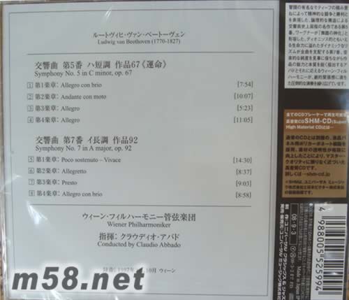 貝多芬第5 & 7交響曲(SHM-CD系列日本版)專輯背面圖片