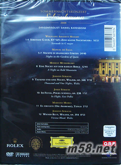 1-4:MOZART:SERENADE IN G major 5-7:FALLA:NIGHTS IN THE GARDENS OF SPAIN 8:MUSSORGSKY:A NIGHT ON BALD MOUNTAIN 9:JOHANN STRAUSS:THOUSAND AND ONE NIGHT,WALTZ 10:JOSEF STRAUSS:IN FLIGHT,F(xiàn)AST POLKA 11:MARIANO MORES:EL FIRULETE(DIE ARABESKE),TANGO 12:JOHANN STRAUSS:VIENNA BLOOD,WALTZ