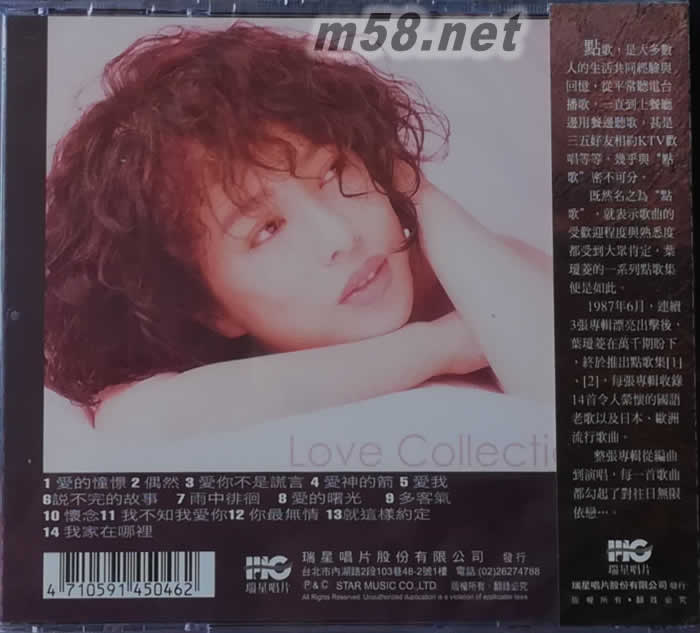 葉璦菱 點歌集4(m58.net) [永在美夢中](BESAME MUCHO),[藍(lán)色探戈](BLUE TANGO),[婚禮的祝福](THE WEDDING)[梭羅河畔] (BANGAWAN SOLO)等等,都是已經(jīng)遺忘多時的經(jīng)典名曲,如今聽來,既讓人驚艷,又教人內(nèi)心激湯不已! 這些洋曲重新填上中文歌詞演唱,有些還是第一次聽致呢!除了新鮮與趣味盎然之外,管弦樂編曲之優(yōu)美曼妙,更不遜于歐美的輕音樂團(tuán),這樣美好的聆賞經(jīng)驗,只有在葉璦菱的[點歌集]才有! 不要猶豫,趕快珍藏!