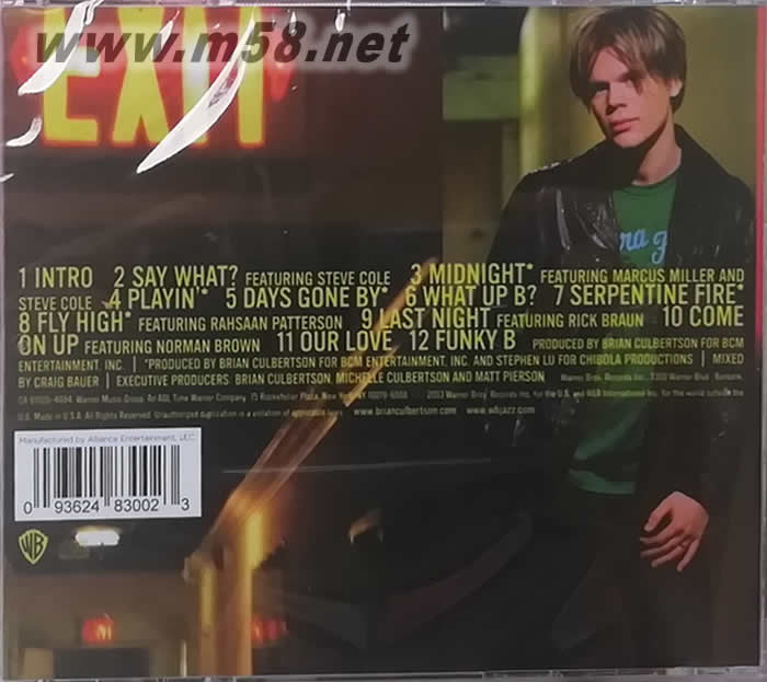 Brian Culbertson1973年1月12日生于美國伊利諾斯州的德克托,其父親Jim Culbertson是一名資深的高中爵士樂團導師和小號手,自小Brian Culbertson就聽他父親平常聽的像the Brecker Brothers、David Sanborn等人的融合爵士樂;同時,他也喜歡70年代一些R&B/pop/funk類的音樂,如: Tower of Power、Earth, Wind & Fire等樂隊。8歲那年接受鋼琴課程,9歲轉到鼓演奏,12歲到貝司。由于對古典樂章反復演奏的厭倦,上初中時,他便開始自己創作現代流行音樂。到Culbertson上高中時,由于深受制作人兼創作人David Foster的影響,他就已經擔任自己的音樂"Long Night Out"制作人,一個人包攬所有樂器部分的演奏,并對其加以編排。當然也正因為此,早早成就了Brian Culbertson這樣一個全能選手. 在2005年正式加盟GRP Records并推出首張大碟, 充滿感性的精彩錄音! 他的音樂,演奏旋律性強,R&B與Funk味并重,非常時尚,深受都市年輕人的喜愛。