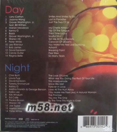 Day 1. Larry Carlton- Smiles and Smiles To Go 2.Joanna Wang- Lost In Paradise 3.Grover Washington Jr. & Bill Withers- Just The Two Of Us 4.Marion Meadows- My Cherie Amour 5.Kenny G- Slip of The Tongue 6.Basia- Third Time Luckyx 7.Grover Washington Jr.- Soulful Strut 8.Warren Hill- Tell Me All Your Secrets 9.Peter White- Caravan of Dreams 10.Lee Ritenour- You Make Feel Like Dancing 11.Bob James- Ashanti 12.David Sanborn- Breaking Point 13.Candy Dulfer- Pee Wee 14.Regina Belle- So Many Tears Night 1.Chris Botti- The Look Of Love 2.Laura Fygi- What are You Doing With The Rest of Your Life 3.David Sanborn- This Masquerade 4.Tommy Emmanuel- Since We Met 5.Kenny G- Forever In Love 6.Aretha Franklin & George Benson- Love All The Way Hurt Away 7.Keiko Lee- You Make Me Feel Like A Natural Woman 8.Kirk Whalum- The Promise 9.Ed Calle- You Are The One 10.Peabo Bryson- By The Time The Night Is Over 11.Warr Hill- Tamara 12.Joe Taylor featuring Al. B Sure- I Just Wanna Stop 13.Marion Meadows- Come Back To Me 14.Peter White- One On One