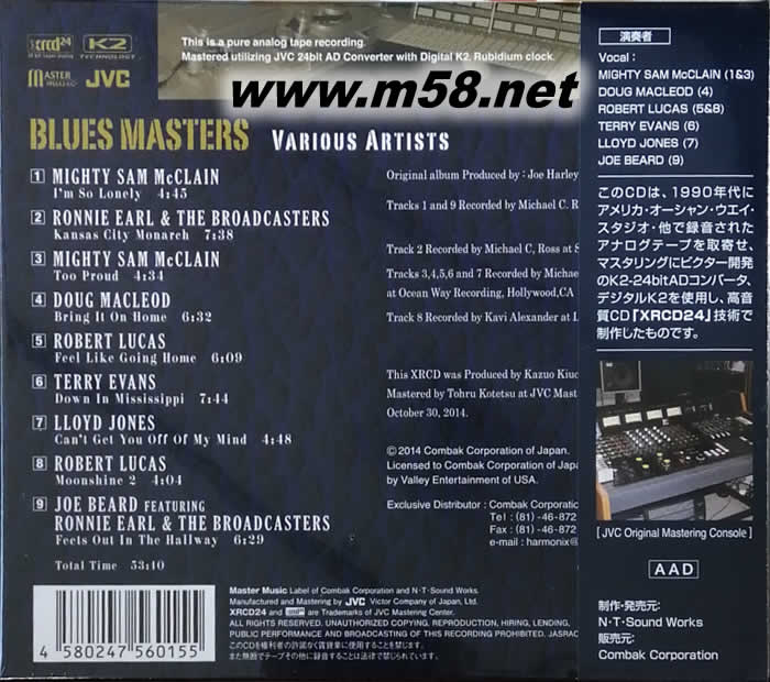 1. I’m So Lonely / Mighty Sam McClain 4’45 2. Kansas City Monarch / Ronnie Earl & The Broadcasters 7’38 3. Too Proud / Mighty Sam McClain 4’34 4. Bring It On Home / Doug Macleod 6’32 5. Feel Like Going Home / Robert Lucas 6’09 6. Down In Mississippi / Terry Evans 7’44 7. Can’t Get You Off Of My Mind / Lloyd Jones 4’48 8. Moonshine 2 / Robert Lucas 4’04 9. Feels Out In The Hallway / Joe Beard FEATURING Ronnie Earl & The Broadcasters 6’29