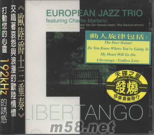價格為估,以實到貨為準! LIBERTANGO歐陸爵士三重奏(m58.net) 《歐陸爵士三重奏》 交織著哀怨與浪漫的歐陸 情懷打動您的心靈192KHZ 的誘惑。 這是一張充滿歐陸情懷的輕爵士 音樂專輯,內里十一首抒情[懷] 歌如詩似畫。熟織的調子澈底交織著浪漫與 哀怨,令人贊嘆不已。 The Deer Hunter,一樣的旋律一樣的感覺,由吉他主奏換 成爵士鋼琴版,蠻清新悅耳。而Do You Know Where You're Going To 鋼琴于昔士風交替演出,恰似一對情人在互相 探聽對的蹤影。至于Libertango 的編曲帶著一點點詭秘 與懸疑,調子里同時流露著絲絲浪漫氣氛,一片凄美景象。 聽全蝶,給灌注人生命力的樂章彷似火鳳凰重生的感覺。錄音 出色處更令本碟平添一份感染力,母帶經192KHZ數碼處理,威力 功不可沒