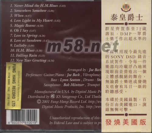 泰皇爵士(m58.net) 張爵士樂性燒錄音是專誠為泰皇72歲壽辰而灌錄的,難能可貴。由DMP旗下的爵士樂人Joe Beck聯(lián)同鐘琴/馬林巴木片琴手Dave Sammels、低音手Lynn Seaton、鼓手Steve Dais、色士風(fēng)高手Bob Mintzer及小號手Scott Wenholt聯(lián)合泡制十二首爵士樂曲。錄音采用DSD,在美國制模及壓碟,錄音效果高水準(zhǔn)。首曲“Never Mind The H.M.Blue”格調(diào)醇美迷人,色士風(fēng)錄得像真自然,音色鏗鏘有光澤。“When”的馬林巴琴聲音亮麗通透,中段的鐘琴聲效果截然不同,各種伴奏樂器音色細(xì)致分明;整體音效高超,聲音層次感豐富,定位準(zhǔn)確。“Only I Say”是全碟最浪漫柔情的作品,以昔士風(fēng)主奏,音色純凈暖潤,傳真度高,結(jié)像立體;配樂清簡,音響畫面如詩如畫。全碟可聽性高,無論你愛不愛吃泰國菜都會喜歡!
