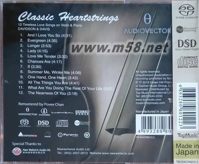 經典金曲扣人心韻 CLASSIC HEARTSTRINGS 12 TIMELESS LOVE SONGS ON VIOLIN PIANO 小提琴與鋼琴 SACD(m58.net)