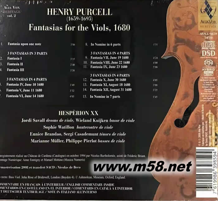 Purcell: Fantasias for the Viols 普賽爾: 古大提琴綺想曲 (SACD)專輯背面圖片