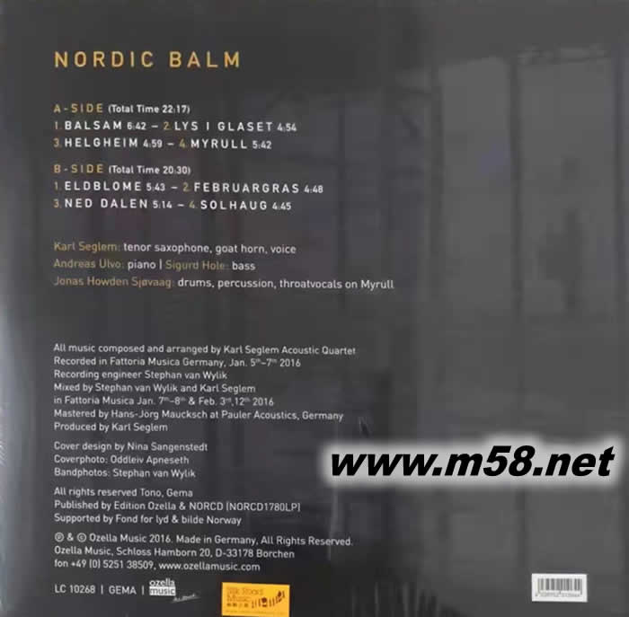 KARL SEGLEM 北歐香脂 NORDIC BALM (薩克斯、羊號角、鋼琴、貝斯) 黑膠專輯背面圖片