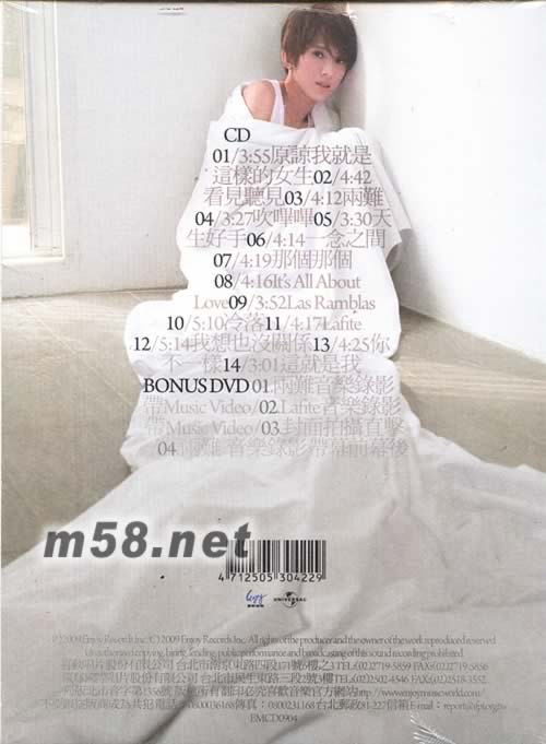 CD 01. 原諒我就是這樣的女生 02. 看見聽見 03. 兩難 04. 吹嗶嗶 05. 天生好手 06. 一念之間 07. 那個那個 08. It's All About Love 09. Las Ramblas 10. 冷落 11. LAFITE 12. 我想也沒關系 13. 你不一樣 14. 這就是我 Bonus DVD 01. 兩難 音樂錄影帶 music video 02. Lafite 音樂錄影帶 music video 03. 封面拍攝直擊 04. 兩難 音樂錄影帶幕前幕後