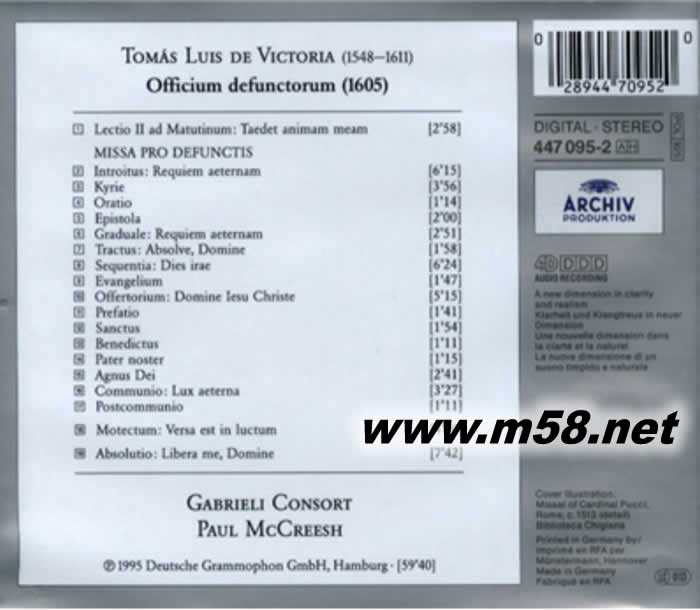 保羅 麥克里希 - 維多利亞:安魂曲 Paul McCreesh - Victoria: RequiemD專輯背面圖片