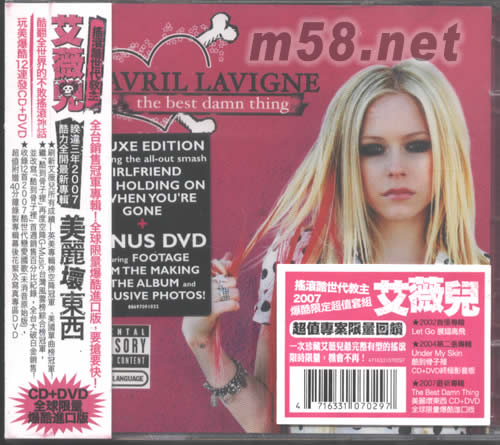 曲目供參考 美麗壞東西: CD 1.GIRLFRIEND 2.I CAN DO BETTER 3.RUNAWAY 4.THE BEST DAMN THING 5.WHEN YOU'RE GONE 6.EVERYTHING BACK BUT YOU 7.HOT 8.INNOCENCE 9.I DON'T HAVE TO TRY 10.ONE OF THOSE GIRLS 11.CONTAGIOUS 12.KEEP HOLDING ON dvd THE MAKING OF THE BEST DAMN THING PHOTO GALLERY LET GO 曲目: 1 losing grip 2 complicated 3 sker boi 4 I'm with you 5 mobile 6 unwanted 7 tomorrow 8 anything but ordinary 9 things I'll never say 10 my world 11 nobody's fool 12 too much to adk 13 naked