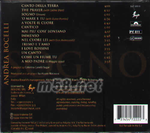 ANDREA BOCELLI SOGNO專輯背面圖片