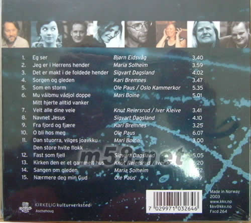1.EG SER - VARIOUS ARTISTS 2.JEG ER I HERRENS HENDER - VARIOUS ARTISTS 3.DET ER MAKT I DE FOLDEDE HENDER - VARIOUS ARTISTS 4.SORGEN OG GLEDEN - VARIOUS ARTISTS 5.SOM EN STORM - VARIOUS ARTISTS 6.MU VAIBMU VADJOL DOPPE, MITT HJERTE ALLTID VANKER - VARIOUS ARTISTS 7.VELT ALLE DINE VEIE - VARIOUS ARTISTS 8.NAVNET JESUS - VARIOUS ARTISTS 9.FRA FJORD OG FJARE - VARIOUS ARTISTS 10.BLI HOS MEG - VARIOUS ARTISTS 11.DAN STUORRA, VILGES JOAVKKU, DEN STORE HVITE FLOKK - VARIOUS ARTIST 12.FAST SOM FJELL - VARIOUS ARTISTS 13.KIRKEN DEN ER ET GAMMELT HUS - VARIOUS ARTISTS 14.SANGEN OM GLEDEN - VARIOUS ARTISTS 15.NARMERE DEG MIN GUD - VARIOUS ARTISTS