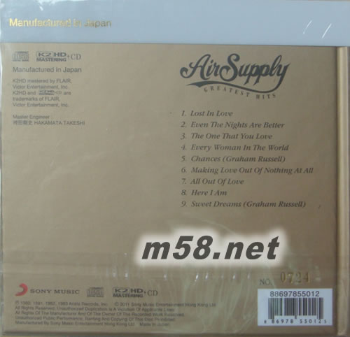 GREATEST HITS (SONY K2HD系列)(2017SONY 特價(jià)系列K2HD)專輯背面圖片