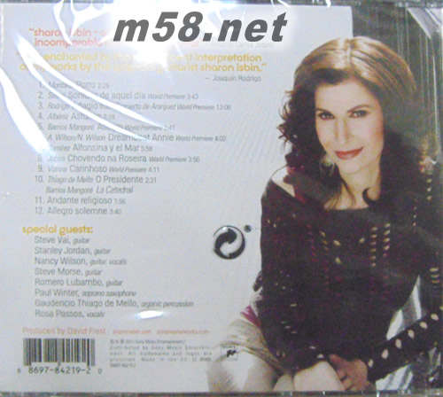GUITAR PASSIONS拉丁情迷 - 吉他作品集(m58.net) 延續馬友友、約夏‧貝爾、克里斯‧伯堤等人,與音樂巨星好友們共同合作的專輯概念,精心推出此份同是大牌云集的跨界拉丁吉他精彩大碟! ◎葛萊美得獎吉他家:莎朗‧易絲賓被讚譽為「當代最卓越的吉他家」,曾獲馬德里、多倫多等各大重要吉他大獎之「最佳古典吉他家」殊榮。 ◎巨星陣容 邀來美國搖滾吉他之神:Steve Vai、Deep Purple吉他手:Steve Morse、爵士吉他名家: Stanley Jordan、巴西國寶歌手兼吉他家:Rosa Passos、紅心樂團主唱兼吉他手:Nancy Wilson等在內的八位樂壇巨星好友們共同合作演出。 ◎豐富曲目 包括的超技的《阿蘭輝茲吉他協奏曲》、曲風從古典、爵士、芭莎諾瓦到流行搖滾等,以拉丁吉他音樂曲風為主的專輯。 ◎精彩改編 芭莎音樂之父裘賓的《雙彩虹》(Chovendo na Roseira),「紅心樂團」作品《Dreamboat Annie》,以及巴西印地安原住民作品《總統啊》等曲,都是不可錯過的精彩改編。 ◎首度錄音 與爵士吉他名家:史坦利‧喬丹與巴西知名女歌手兼吉他家:羅莎‧芭蘇絲分別合作演出的《那日的聲響》與《愛》等,皆為重新改編演繹的首度錄音。 媒體評論 “莎朗‧易絲賓─真正的魔女……無與倫比的吉他大師” ─ 安東尼‧卡洛斯‧裘賓 “我完全沉醉於杰出吉他演奏家─莎朗‧易絲賓對我作品的偉大詮釋”─ 羅德里哥 被稱為「古典吉他界的莫內」的美國女性吉他家莎朗‧易絲賓,是近三十年來影響古典吉他界最大的女性,她的魅力和才干甚至讓美國的茱莉亞音樂院邀她開辦該校的吉他組。2009年,她在索尼發行了「新世界之旅」(Journey To The New World)專輯,邀來美國民謠天后:瓊‧拜雅共同演出大獲好評后。緊接在2011年專輯推出此張最新專輯,一口氣邀請包括以改編Frank Zappa而竄紅的美國搖滾吉他之神Steve Vai在內的八位好友一同來演出這張專輯的十一首作品,其中包括了多首世界首度錄音的曲目。 其中阿根廷作曲家:Quique Sinesi的《那日的聲響》(Sonidos de aquel dia)一曲是世界首演,這首原本是吉他獨奏曲的作品,在這里改編成雙吉他演奏,是世界首度演出,此曲中易絲賓邀來享譽爵士樂壇已久的美國爵士吉他名家:史坦利‧喬丹(Stanley Jordan)合作;《愛》(Carinhoso)一曲也是世界首度錄音,是請到巴西知名女歌手兼吉他家:羅莎‧芭蘇絲(Rosa Passos)一同演出;另外由吉他之神:Steve Vai改編自巴拉圭作曲家:Agustin Barrios Mangore的《快板》、「紅心樂團」(Heart)樂團主唱/吉他手:南西‧威爾森(Nancy Wilson)親自改編自己樂團作品的《Dreamboat Annie》、丹尼爾‧沃爾夫改編自巴西印地安原住民:Gaudencio Thiago de Mello的作品《總統啊》(O Presidente)一曲、以及Barbosa-Lima和Lubambo改編自剛過世的芭莎諾瓦天王:裘賓(Antonio Carlos Jobim)的《雙彩虹》(Chovendo na Roseira)等曲,也都是世界首度改編。這里面最特別的一曲又是「總統啊」,此曲是描寫1964年巴西一位吉他家在街頭演奏要人民起而反抗當局的英勇事蹟。 這張專輯中的十二首樂曲,當然都是以吉他為主要樂器,其中也不乏非常有名的《阿蘭輝茲吉他協奏曲》的慢板樂章,易絲賓請來兩位吉他界好友,一同演奏這份改編為三吉他的名曲,其中第一位吉他手是巴西爵士吉他手:Romero Lubambo,他曾與巴西芭莎諾瓦天后:艾絲特‧吉芭托(Astrud Gilberto)與黛安娜‧瑞芙(Dianne Reeves)等人合作專輯,從巴西一路紅到美國;第二位合作者是Steve Morse,他是著名的Dixie Dregs樂團的創辦人,后來加入鼎鼎大名的Deep Purple樂團。這是一張非常熱鬧,曲風從古典、爵士、芭莎諾瓦到流行搖滾等,以拉丁吉他音樂曲風為主的專輯,可以說是把馬友友的之前「阿帕拉契之旅」、「巴西情迷」、或「激情探戈」的概念專輯,再延伸發展在拉丁吉他音樂上的一張創意專輯。