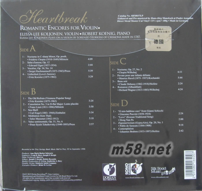 心碎 浪漫小提琴之聲Heartbreak ROMANTIC ENCORES FOR VIOLIN 雙黑膠(m58.net)