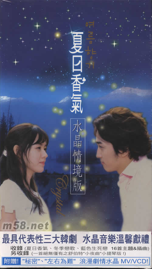 價(jià)格為估,以實(shí)到貨為準(zhǔn)! 夏日香氣(水晶情境版)(m58.net) 最具代表性三大韓 水晶音樂溫馨獻(xiàn)禮 收錄(夏日香氣、冬季戀歌、藍(lán)色生死戀 16首主題&插曲) 另收錄(一首絕無僅有之舒伯特“小夜曲”小提琴版!) 附加贈(zèng)“秘密”、“左右為難”浪漫劇情水晶 MV/VCD! 曾有兩部韓劇,藍(lán)色生死戀&冬季戀歌,深深影響了全亞洲韓迷的愛情觀。金牌導(dǎo)演伊錫湖以美風(fēng)潤(rùn)飾了這兩部凄美的愛情劇。如今,他的第三大部戲“夏日香氣”橫掃亞洲,偷取了多少韓迷的眼淚!!! 這張?zhí)厥庥譁剀暗乃榫硨]嫵艘运穱萄葑啻巳看硇詯矍榇髴虻?6首主題,插曲,更加收了一首收所未有的“小夜曲”小提琴版。而在附贈(zèng)的VCD內(nèi)更剪輯了“夏日香氣”劇里最唯美浪漫的畫面,譜以醉人的水晶旋律,呈南獻(xiàn)給您的,是迥炯于一般水晶音樂版本的珍貴獻(xiàn)禮!!!