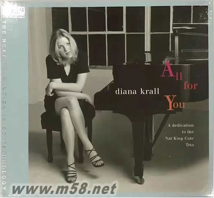 ALL FOR YOU一切為了你 XRCD(m58.net) 美國(guó)音樂(lè)史上有兩位Nat King Cole,大多數(shù)的人只記得歌聲優(yōu)美,唱過(guò)“Unforgettable”等無(wú)數(shù)名曲的那一位,而被遺忘的那位Nat Cole,則是爵士史上數(shù)一數(shù)二頂尖鋼琴師之一,流利的鋼琴線條為他贏得了許多的仰慕者,包括Oscar Peterson及Bill Evans等大師。這兩位Nat Cole后來(lái)與吉他手Oscan Moore及貝斯手Johnny Miller組成了King Cole Trio,在40年代發(fā)表了「All For You」、「Staighten Up And Fly Right」等曠世鉅作。 「All For You」這張專(zhuān)輯是一位叫叫Diana Karll的女孩向King Cole Trio致敬的一張專(zhuān)輯,也是一張受Nat Cole啟發(fā)而孕育而生的作品,Diana一人分飾Nat Cole爵士歌手與爵士歌手Nat Cole兩個(gè)角色,並找來(lái)吉他手Rusell Malone和貝斯手Paul Keller,仿照King Cole Trio同演出,他們倆人去年花了一整個(gè)夏天作巡迴演出,已在長(zhǎng)達(dá)數(shù)月的合作中培養(yǎng)出絕佳的默契。和King Cole Trio一樣,Diana Krall的樂(lè)團(tuán),這是一個(gè)沒(méi)有鼓手的樂(lè)團(tuán),正因如此他們必須使勁地演奏以代替鼓手在樂(lè)團(tuán)中主導(dǎo)節(jié)奏的地位。 Diana Krall歌聲的感覺(jué),就像凌晨一、兩點(diǎn),獨(dú)自一人坐在人潮已退的小酒吧里聽(tīng)歌一樣,在一天疲憊之后,似乎只有她略帶傷感的歌聲最了解你的心情。而她的嗓音就像是加了蜂密的威士忌,一醉卻令人無(wú)法抗拒。專(zhuān)輯中的第一首曲子”I’m An Errand Girl For Rhythm”被Diana唱得十分俏皮,中間一段鋼琴SOLO非常精彩。”Gee Baby,Ain’t I Good To You”原為King Cole Trio的作品,Diana將原本的版本放慢速度,別有一番風(fēng)味。一旦品嚐她的作品,相信你也會(huì)像喝了加上蜂蜜的威士忌一樣,明之易醉,卻忍不住想喝。