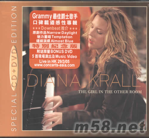 價格為估,以實到貨為準! THE GIRL IN THE OTHER ROOM (特別紀念版)(m58.net) 請點看產品正、背面大圖 格林美最佳爵士歌手 口碑載道感性專輯 魅力重唱TOM WAITS 3TEMPTATION 纏綿演繹EIVIS COSTELLO 4 AL MOST BLUE 爵士推薦1:STOP THIS WORLD 7 I’M PULLING THROUGH 原創BALLAD 9 NARROWDAYLIGHT 12 DEP ARTURE BAY GRAMMY 獲獎班底 HI FI 制作〈當今最具影響力爵士女歌手〉 特別紀念版 附送限量BONUS DVD 5首現場演出及MV LIVE IN HK/29-3-05