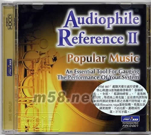 監聽天碟II流行音樂 POPULAR MUSIC(m58.net) FLM 007聆聽天碟II流行音樂,精心挑選15首敞錄音輯自[當鋪爵士],全部、藍調咖啡、爸爸教我的歌、等到經典上榜名稱;并在內詳列每段如何測試音樂系統之各種不同性能。此碟用session tape重新裝模,效果比原碟更靚聲,不妨比較。聆聽或欣賞,